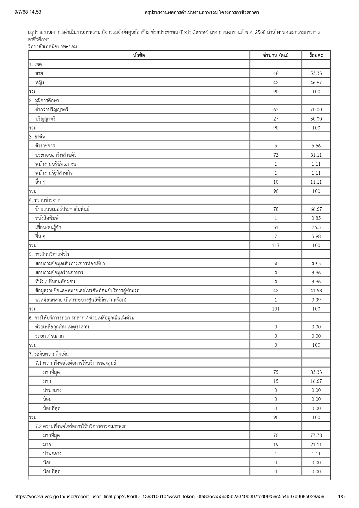 รายงานสรุปสถิติการให้บริการ Fix-it