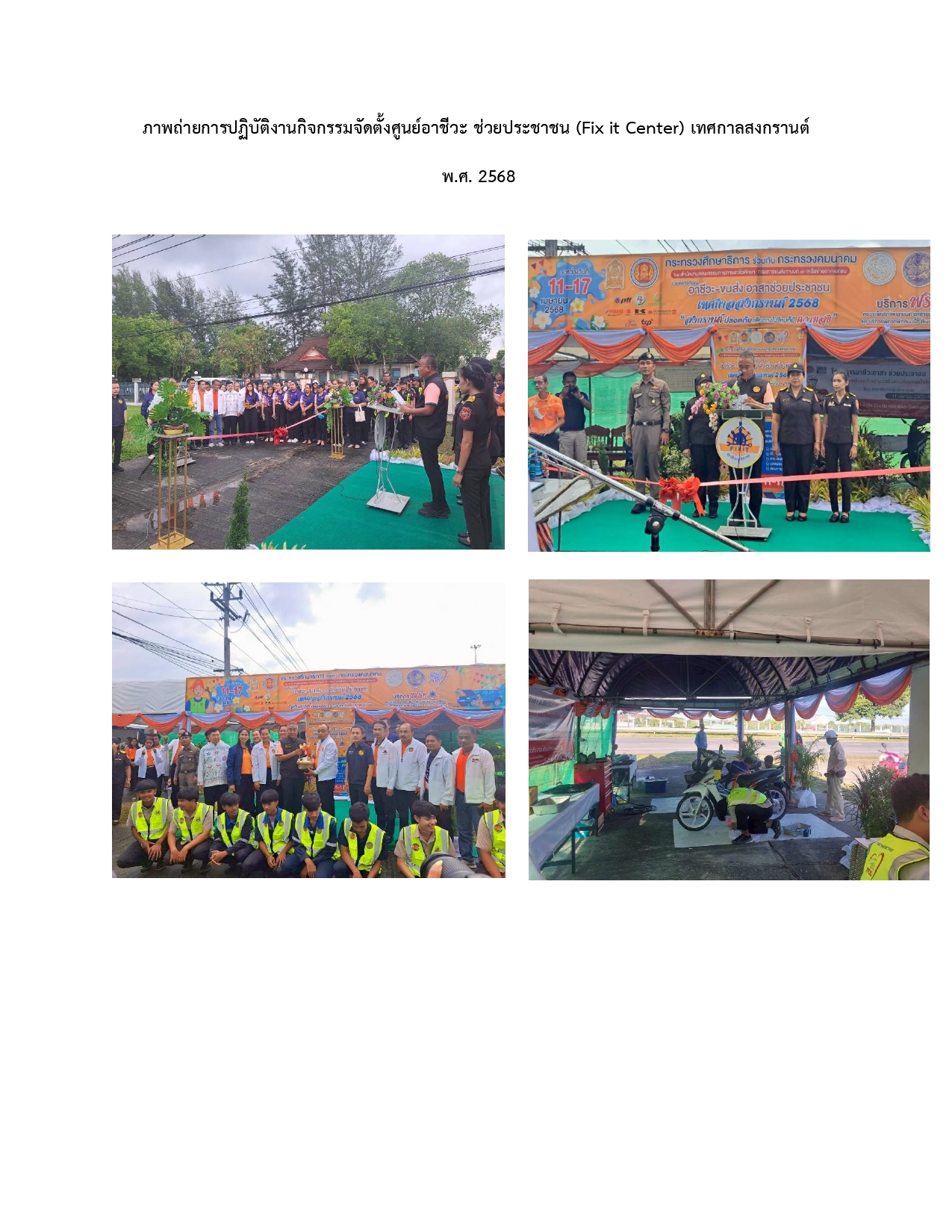 กิจกรรมจัดตั้งศูนย์อาชีวะ ช่วยประชาชน (Fix it Center) เทศกาลสงกรานต์ พ.ศ. 2568