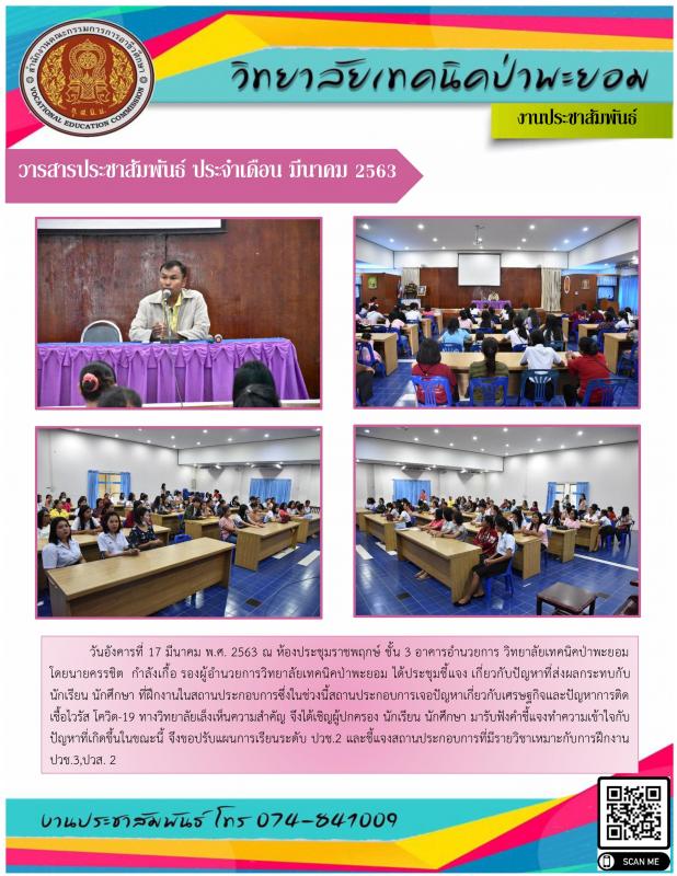 วารสารประสัมพันธ์วิทยาลัยเทคนิคป่าพะยอม ประจำเดือน มีนาคม 2563
