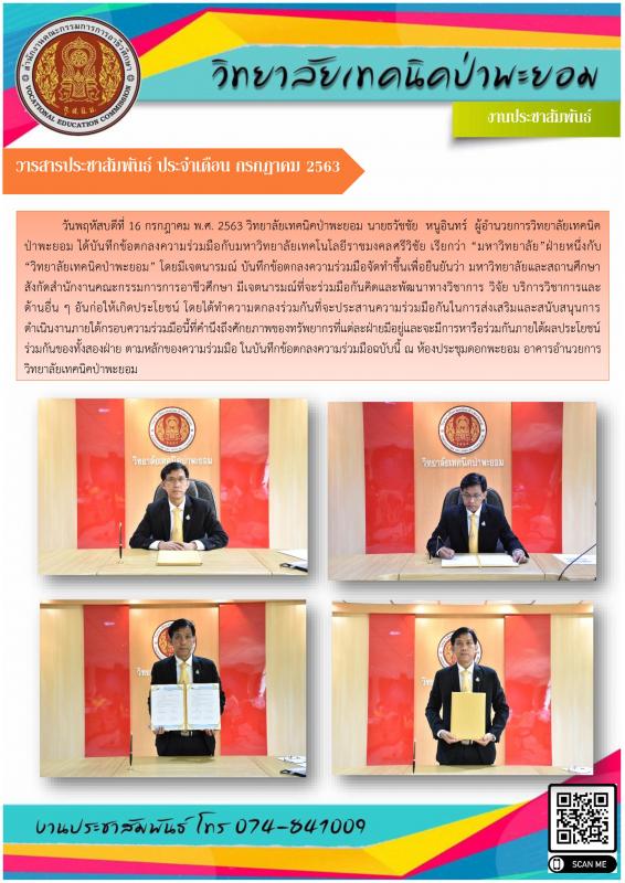 วารสารประสัมพันธ์วิทยาลัยเทคนิคป่าพะยอม ประจำเดือน กรกฎาคม 2563