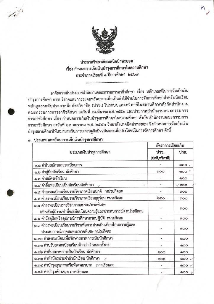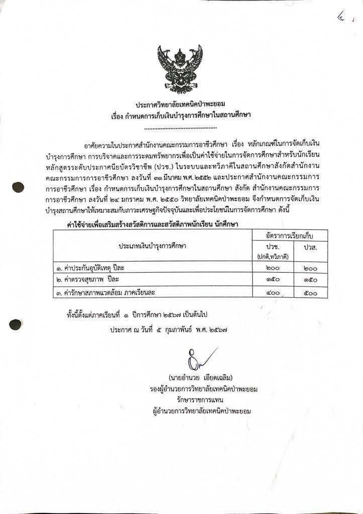 ประกาศ กำหนดการเก็บเงินบำรุงการศึกษา ภาคเรียนที่ 1 ปีการศึกษา 2567