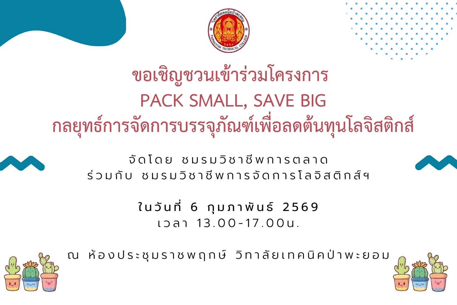 ประชาสัมพันธ์ โครงการ PACK SMALL, SAVE BIG กลยุทธ์การจัดการบรรจุภัณฑ์เพื่อลดต้นทุนโลจิสติกส์