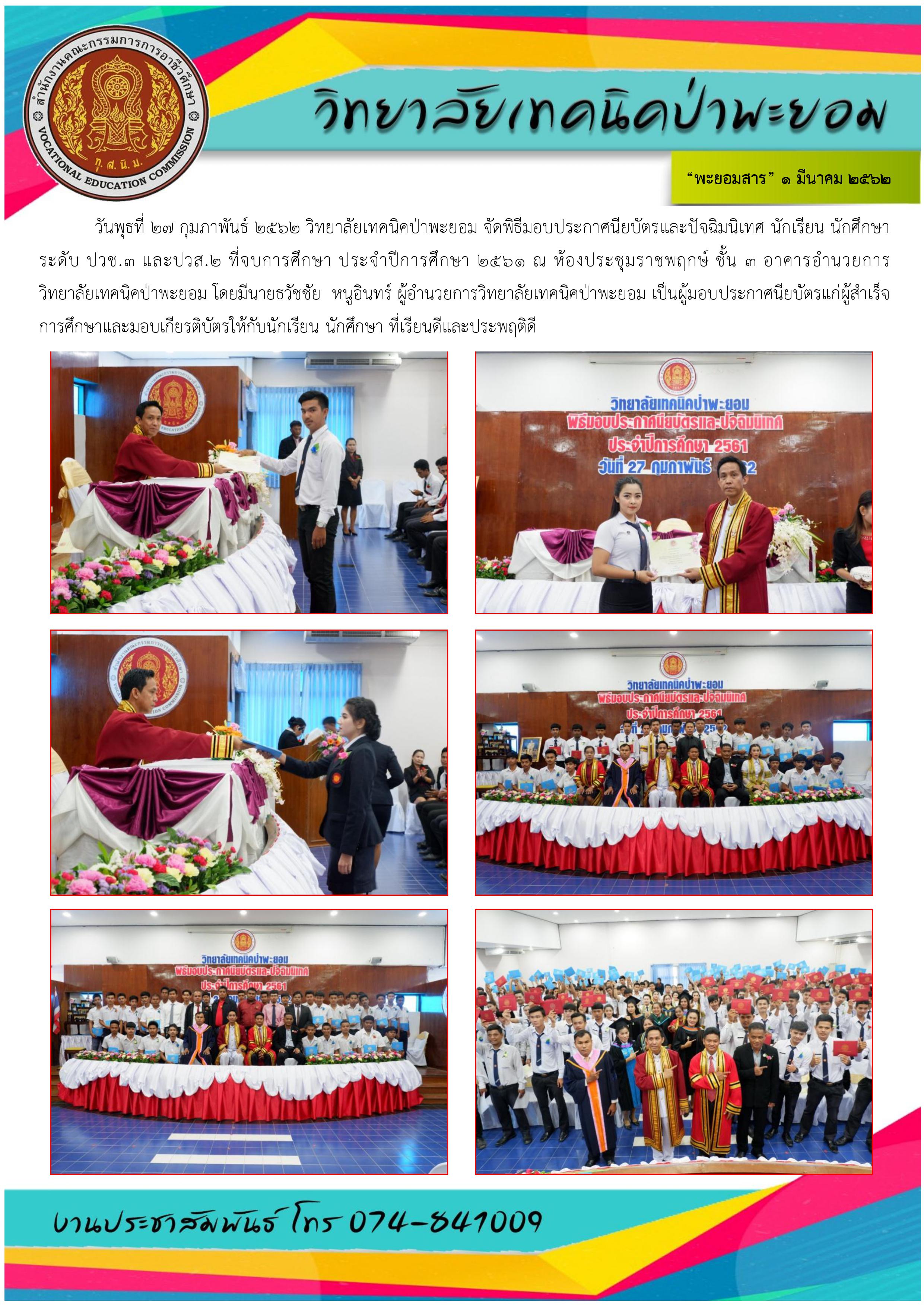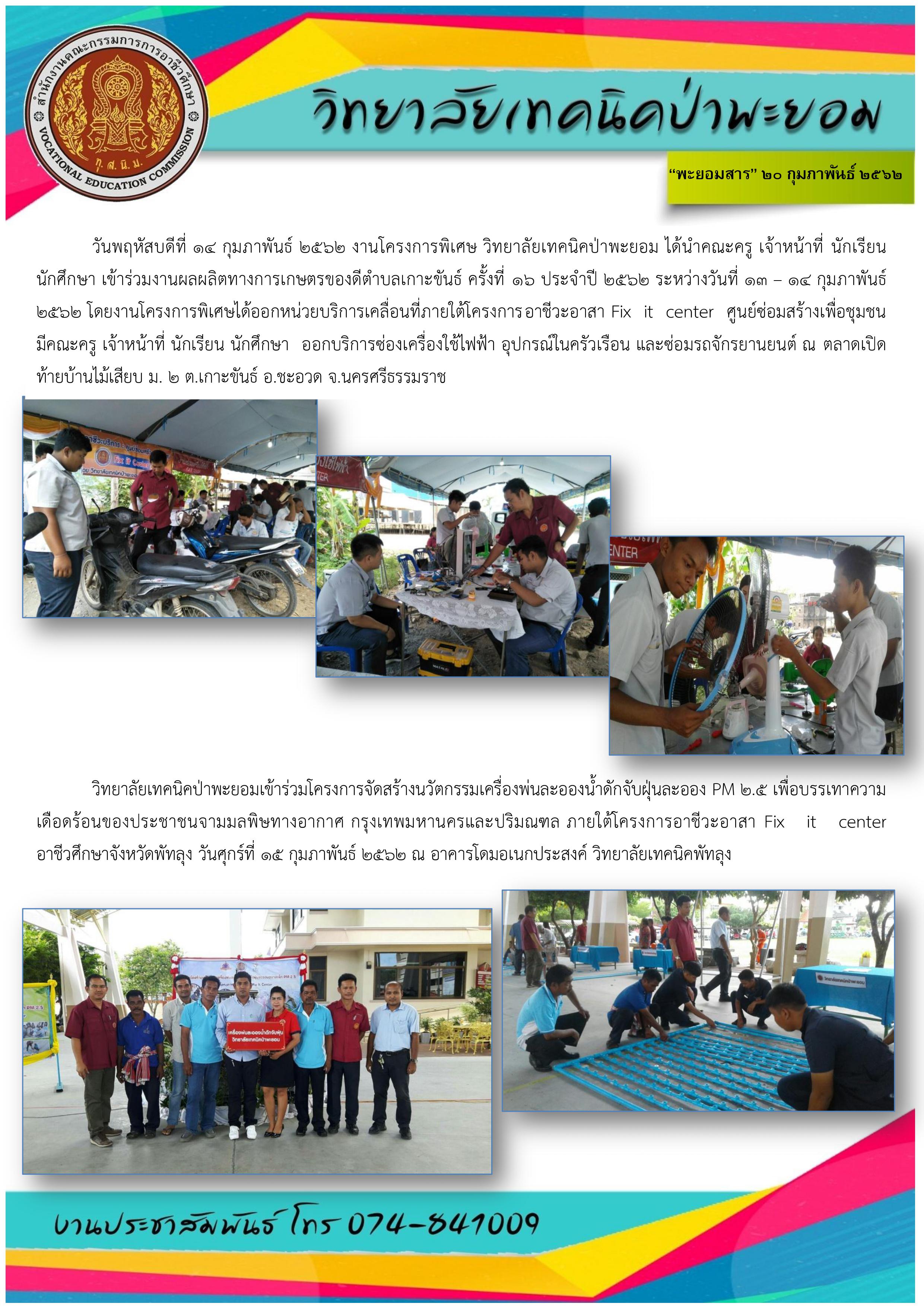 พะยอมสาร วิทยาลัยเทคนิคป่าพะยอม ประจำเดือน กุมภาพันธ์ 2562