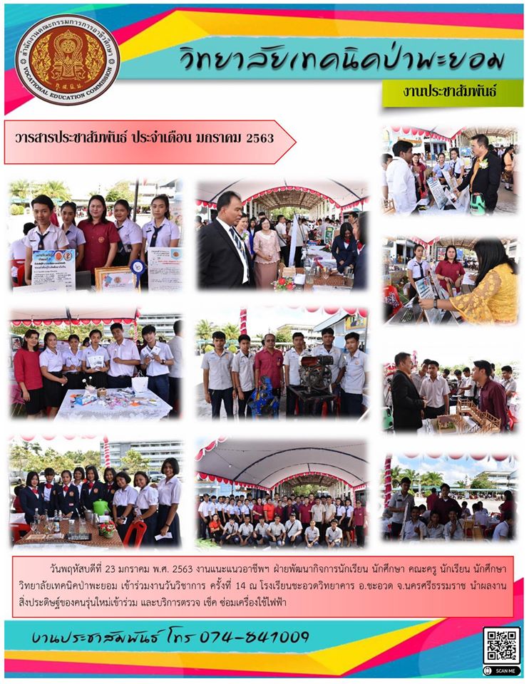 วิทยาลัยเทคนิคป่าพะยอม เข้าร่วมงานวันวิชาการ ครั้งที่ 14 ณ โรงเรียนชะอวดวิทยาคาร อ.ชะอวด จ.นครศรีธรรมราช