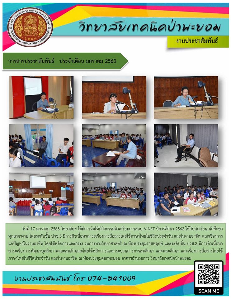 วิทยาลัยเทคนิคป่าพะยอม จัดกิจกรรมติวเตรียมการสอบ V-NET ปีการศึกษา 2562