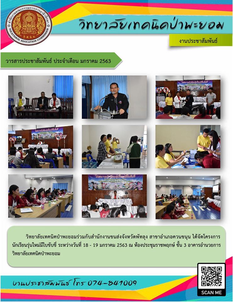 วิทยาลัยเทคนิคป่าพะยอมร่วมกับสำนักงานขนส่งจังหวัดพัทลุง สาขาอำเภอควนขนุน จัดโครงการนักเรียนรุ่นใหม่มีใบขับขี่