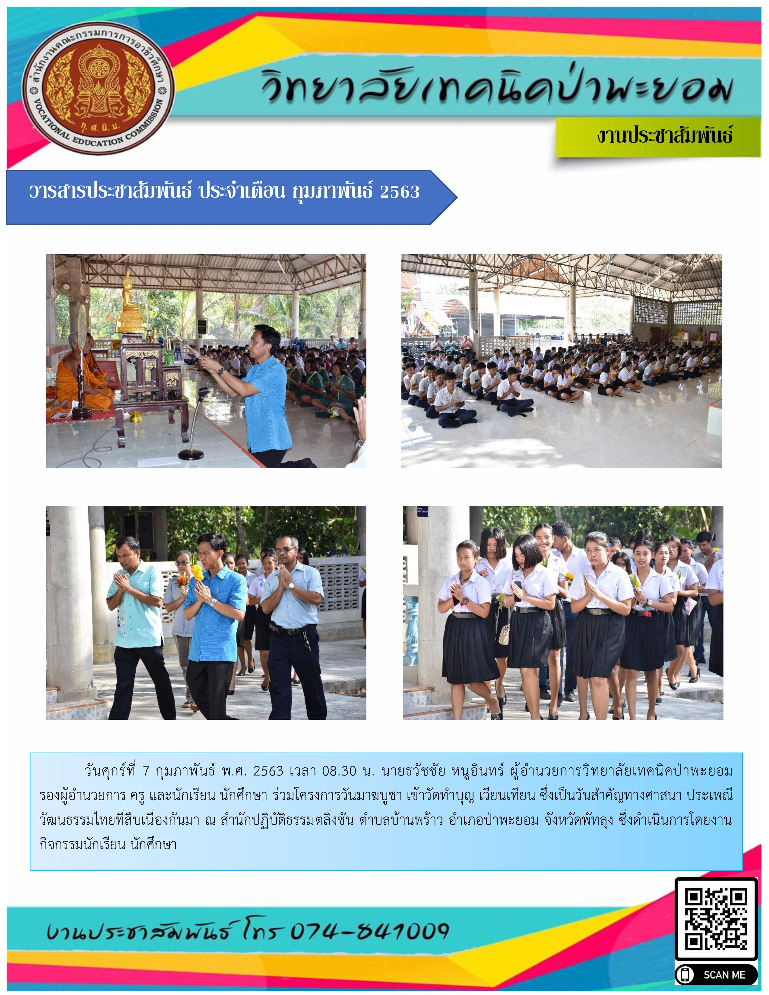 วิทยาลัยเทคนิคป่าพะยอม ร่วมโครงการวันมาฆบูชา เข้าวัดทำบุญ เวียนเทียน ณ สำนักปฏิบัติธรรมตลิ่งชัน