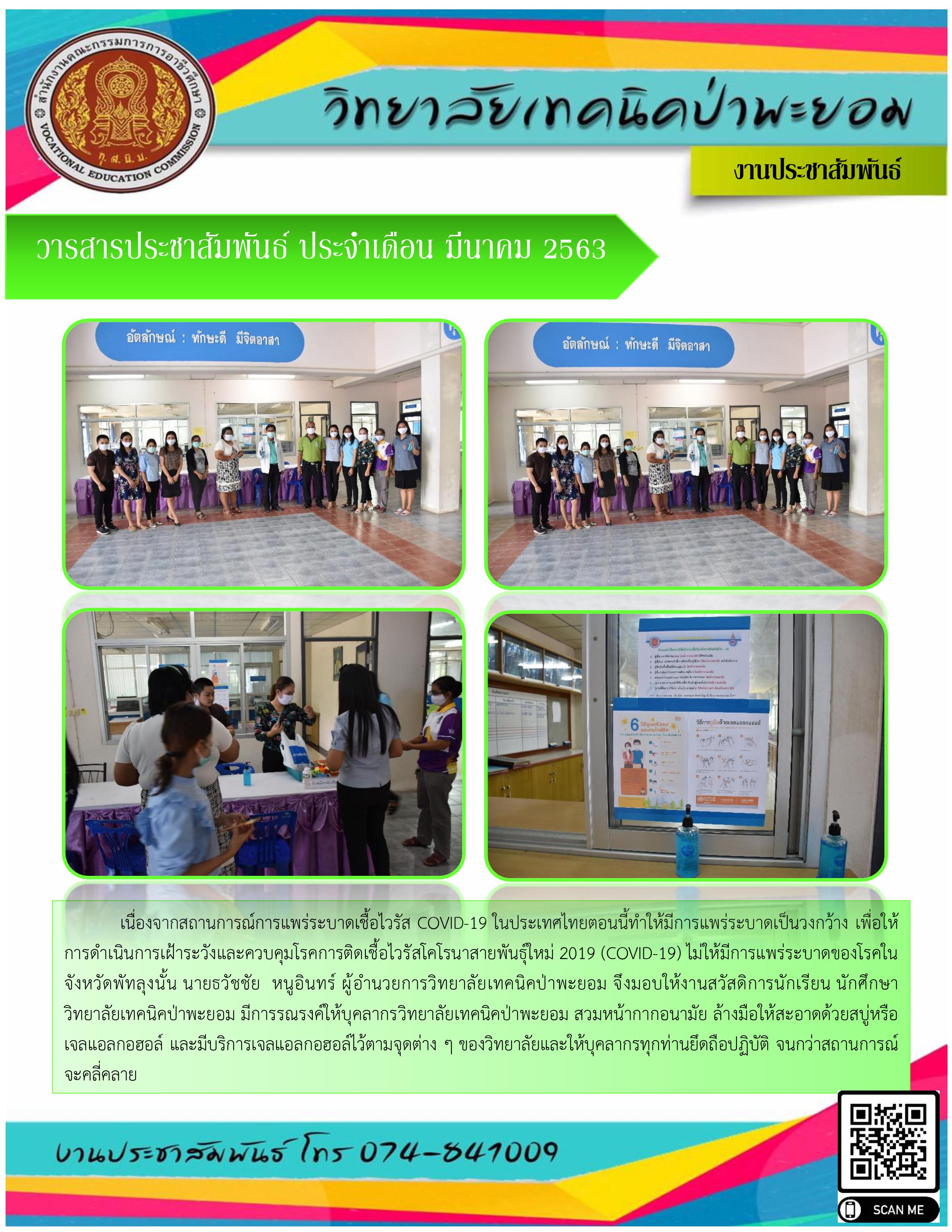 วิทยาลัยเทคนิคป่าพะยอม การดำเนินการเฝ้าระวังและควบคุมโรคการติดเชื้อไวรัสโคโรนาสายพันธุ์ใหม่ 2019 (COVID-19) ไม่ให้มีการแพร่ระบาดของโรคในจังหวัดพัทลุง