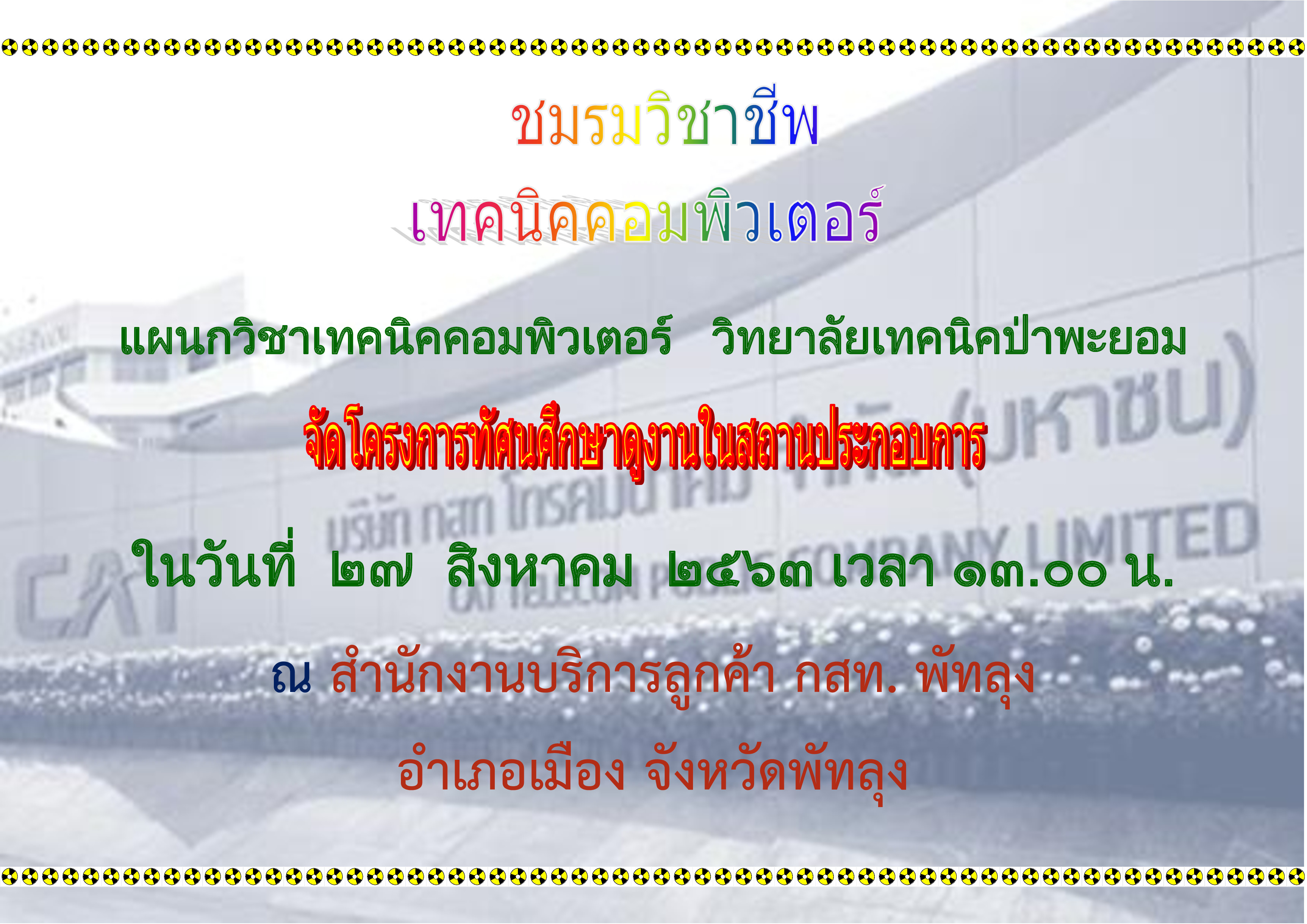 ประกาศ ชมรมวิชาชีพเทคนิคคอมพิวเตอร์ จัดโครงการทัศนศึกษาดูงานในสถานประกอบการ