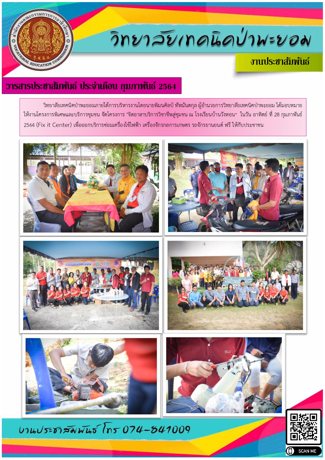 วิทยาลัยเทคนิคป่าพะยอมจัดโครงการ จิตอาสาบริการวิชาชีพสู่ชุมชน ณ โรงเรียนบ้านวังหอน