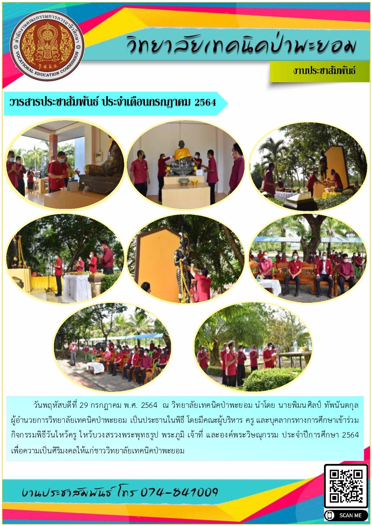 วิทยาลัยเทคนิคป่าพะยอมจัดกิจกรรมวันไหว้ครู ประจำปีการศึกษา 2564